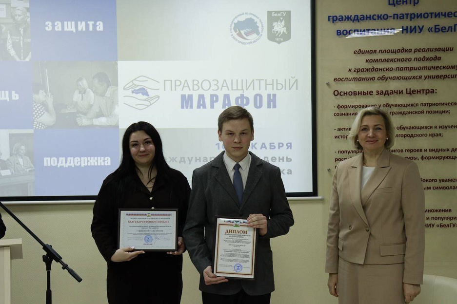 В номинации «Правозащитные вызовы современности» победила Коломиец Виктория Александровна, студентка 3 курса, представившая работу «Приоритеты деятельности Уполномоченного по правам человека в Белгородской области в условиях современных вызовов».